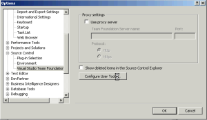 - Then select “Source Control \ Visual Studio Team Foundation Server” in the left treeview control.