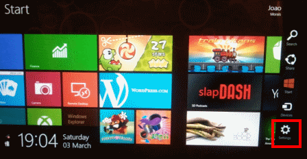 3  Press “Settings”, the “Charm bar” will disapear and another panel on the right side will be displayed: